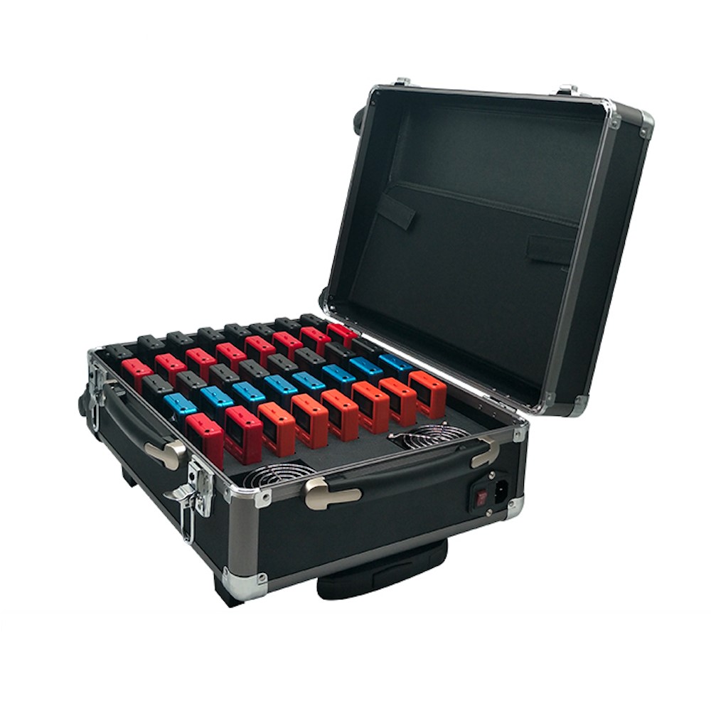 Der Koffer hat 40 Ladeschalen im Innenraum, in die die Funkgeräte leicht eingesteckt werden können.