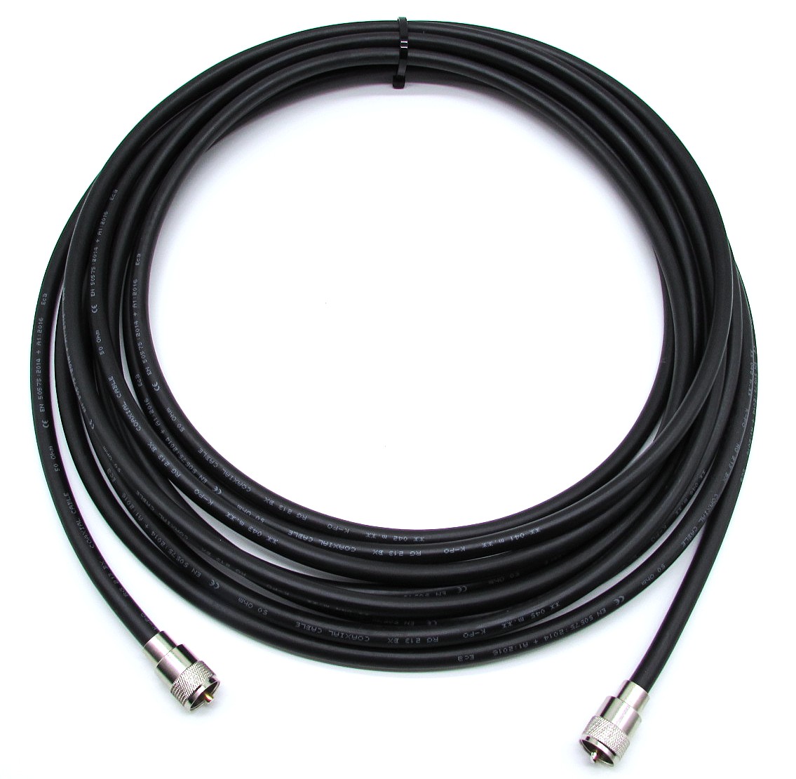 RG 213 BX 50m Koaxialkabel 9 mm schwarz mit angeschlossene PL Steckern