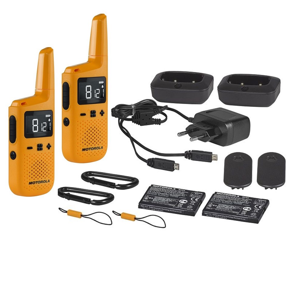 2er Set Motorola Talkabout T72 PMR Funkgeräte inkl. 2 Standladeschalen, Li-ION Akkus, Karabinerhaken und Trageschlaufen