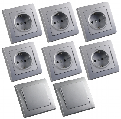 silber 6x Steckdose, 2x Schalter, inkl. Rahmen